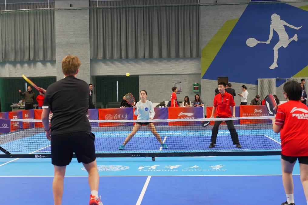 2月23日,中美青少年在清华大学参加匹克球混双比赛。新华社记者 郭沛然 摄