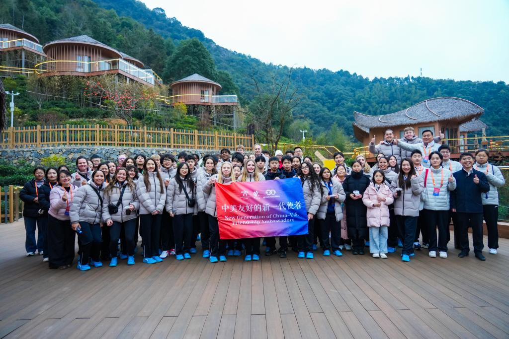2月18日,中美青少年在江西上犹梅水乡园村合影。(活动主办方供图)