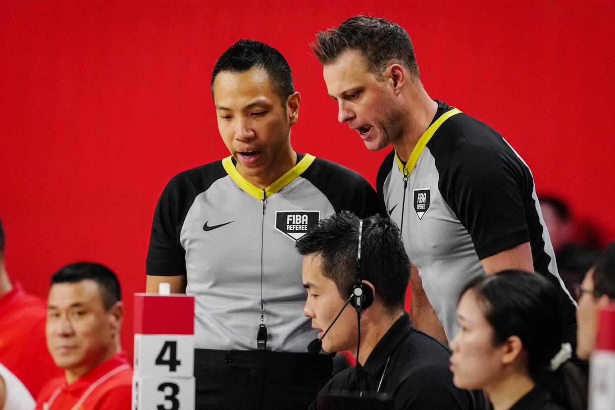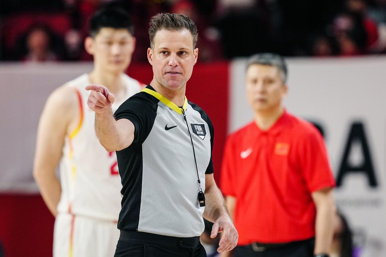 2月26日,裁判琼斯在比赛中判罚中国队技术犯规。新华社记者 贾浩成 摄