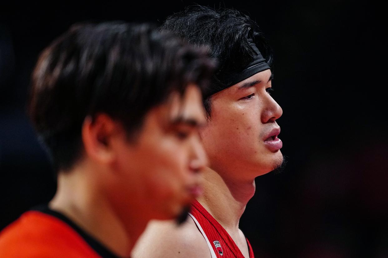 2月26日,日本队球员渡边雄太(右)在比赛后。新华社记者 贾浩成 摄