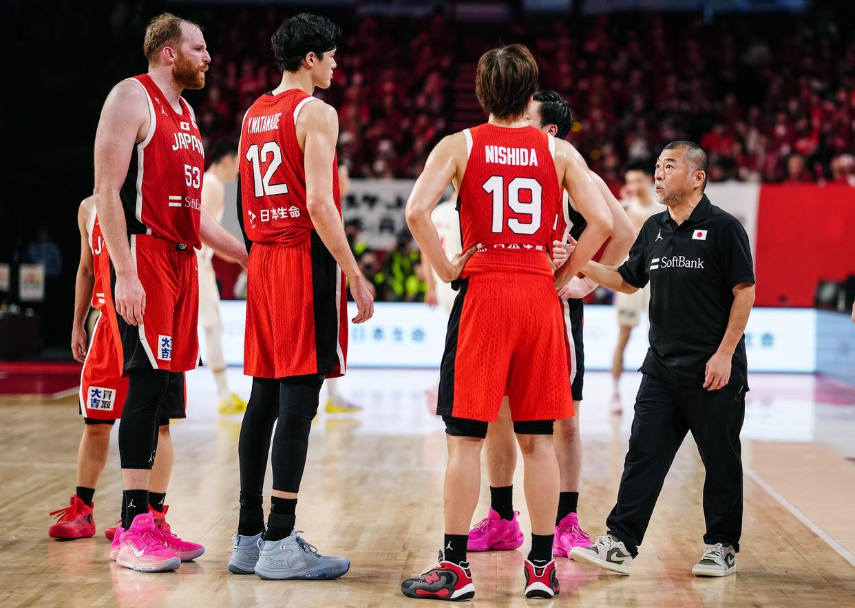 2月26日,日本队主教练桶谷大(右一)在比赛间隙指导球员。新华社记者 贾浩成 摄
