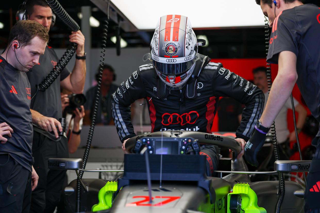 3月6日,奥迪车队德国车手霍肯伯格在车库内准备。新华社发(钱俊摄)