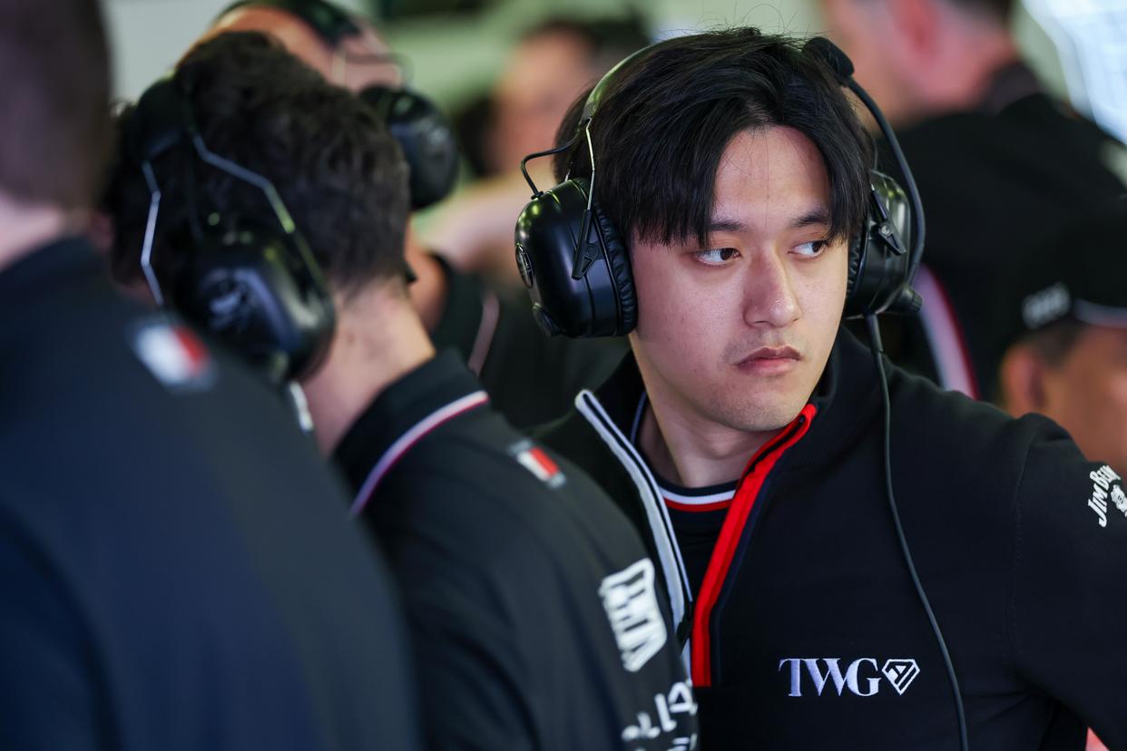 3月6日,凯迪拉克车队储备车手周冠宇在车库内。新华社发(钱俊摄)