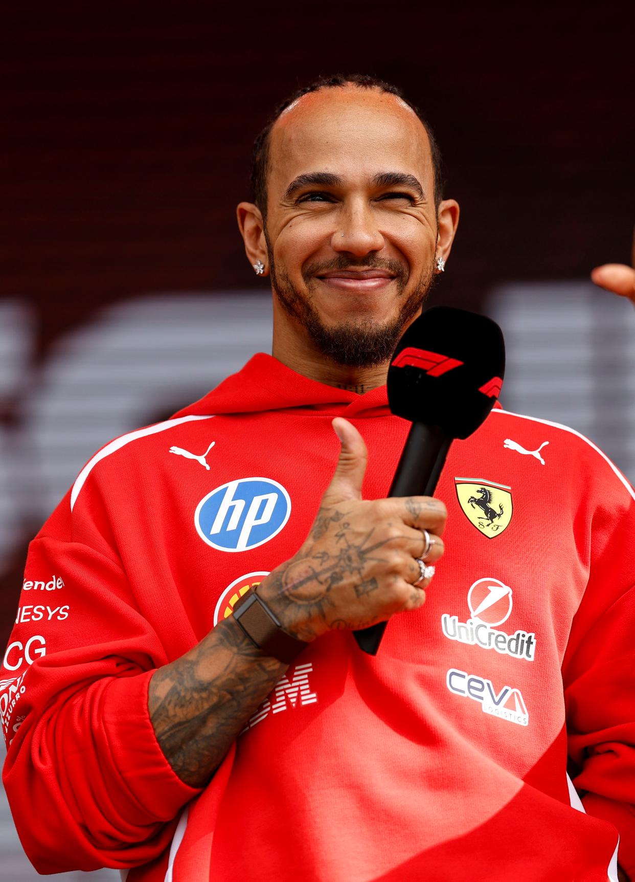 3月6日,法拉利车队英国车手汉密尔顿出席练习赛前的车迷见面会。新华社记者 马平 摄