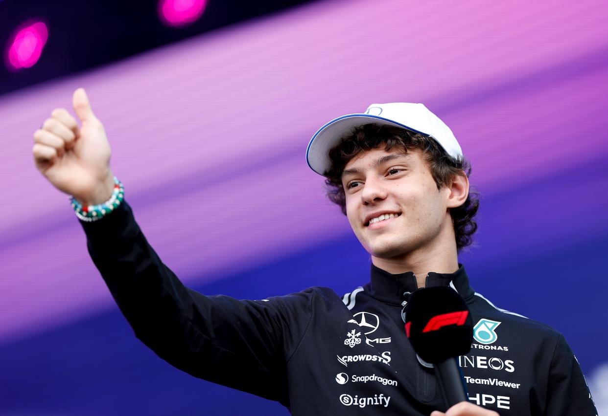 3月6日,梅赛德斯车队意大利车手安东内利出席练习赛前的车迷见面会。新华社记者 马平 摄