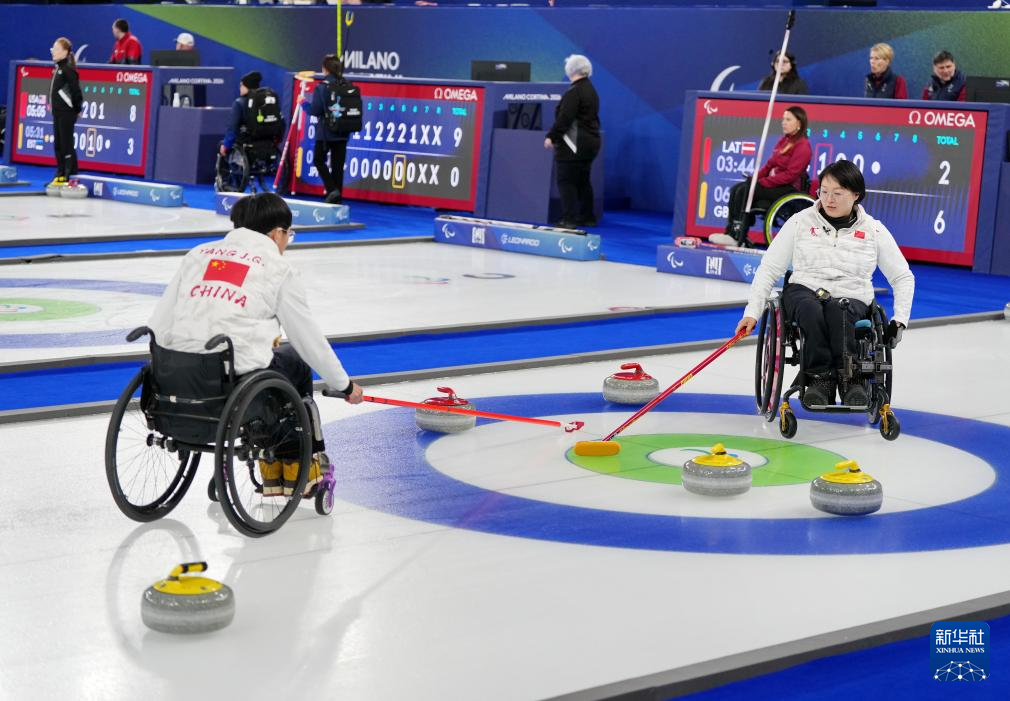 当地时间3月5日,在意大利科尔蒂纳举行的米兰-科尔蒂纳冬残奥会轮椅冰壶混双循环赛中,中国队8比7战胜意大利队。