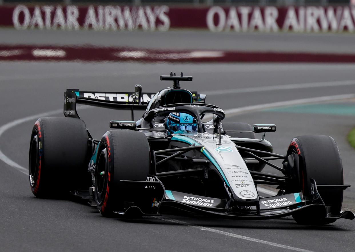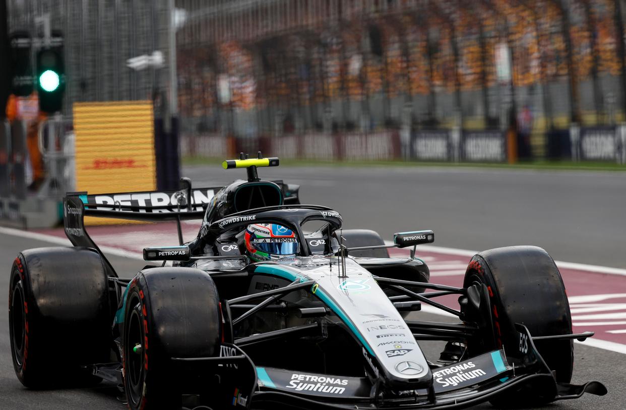 3月7日,梅赛德斯车队英国车手拉塞尔在排位赛中。新华社记者 马平 摄