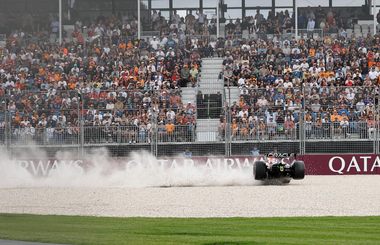 3月7日,红牛车队荷兰车手维斯塔潘在排位赛中失控冲出赛道。新华社记者 马平 摄