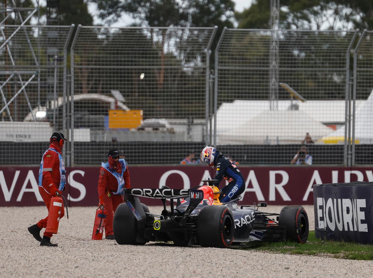 3月7日,红牛车队荷兰车手维斯塔潘在排位赛中失控冲出赛道后离开赛车。新华社记者 马平 摄