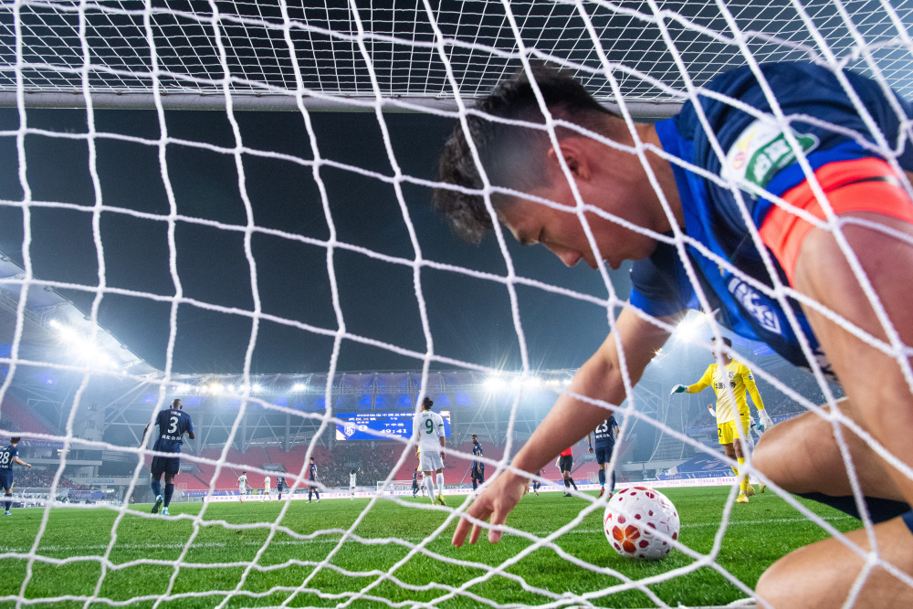 3月8日,北京国安队球员张稀哲在比赛中主罚任意球。新华社记者 肖艺九 摄