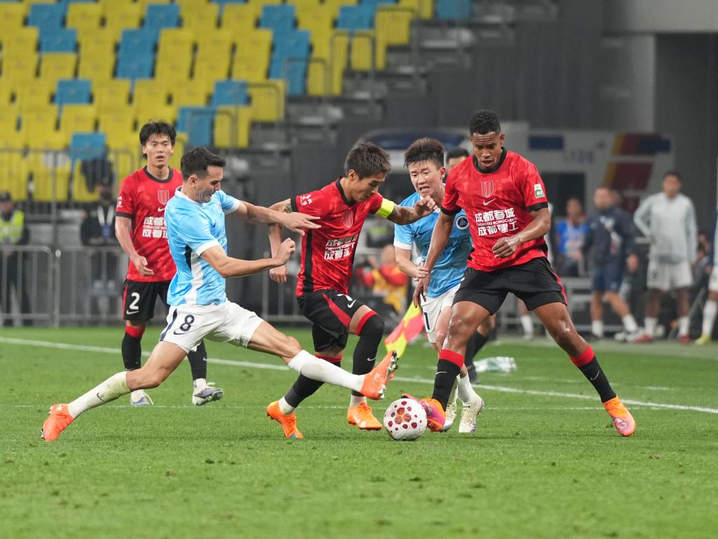 人数占优的成都蓉城此后完全掌控比赛节奏。上半场,韦林顿、费利佩、胡荷韬连入三球,将比分反超为3:1。易边再战,韦林顿再下一城,替补登场的廖荣祥锦上添花,最终成都蓉城5:1大胜对手。