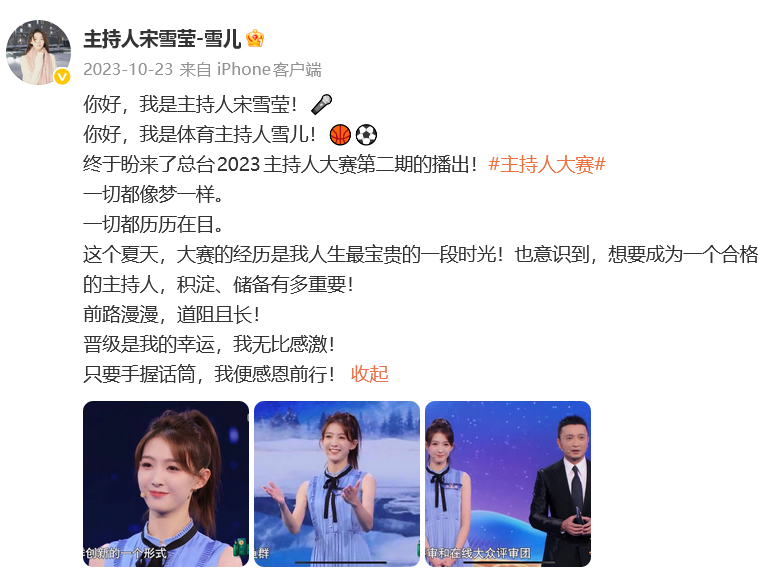 3月11日,@北京日报:据青岛日报消息,3月9日,在《天下足球》最新一期节目中,全国球迷惊喜地发现,“95后”主持人宋雪莹首度亮相,正式成为央视体育频道金牌栏目《天下足球》的主持人。