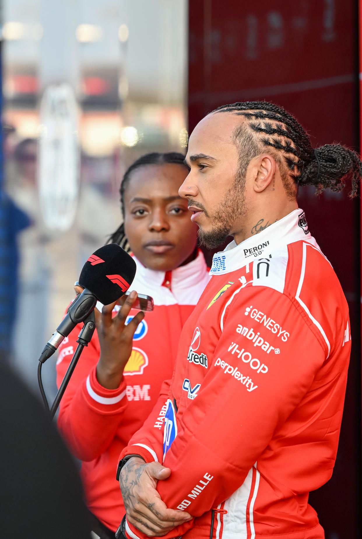 3月13日,法拉利车队英国车手汉密尔顿在比赛后接受采访。新华社记者 陈浩明 摄