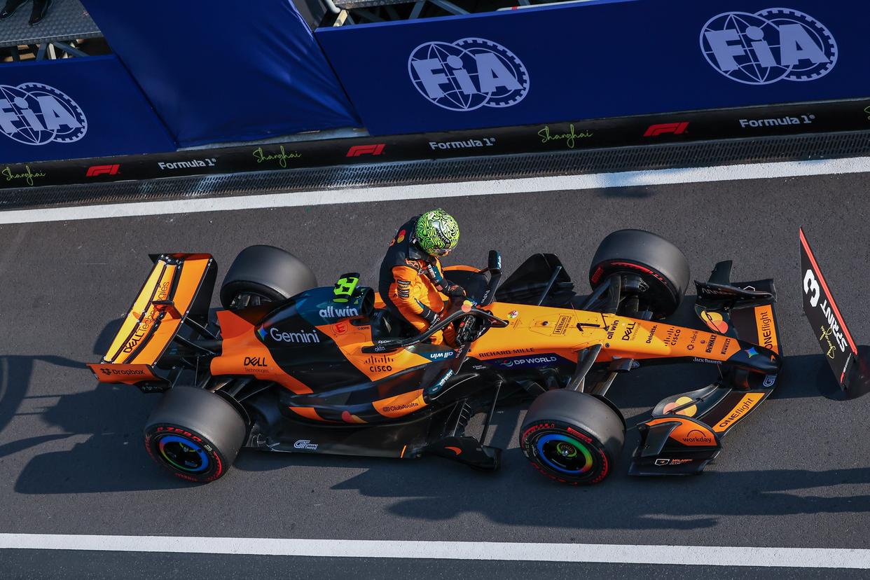 3月13日,迈凯伦车队英国车手诺里斯在比赛后出车。新华社记者 陈浩明 摄