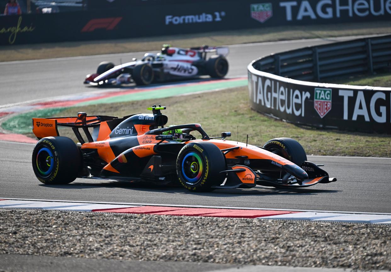3月13日,迈凯伦车队英国车手诺里斯(前)在比赛中。新华社记者 陈浩明 摄