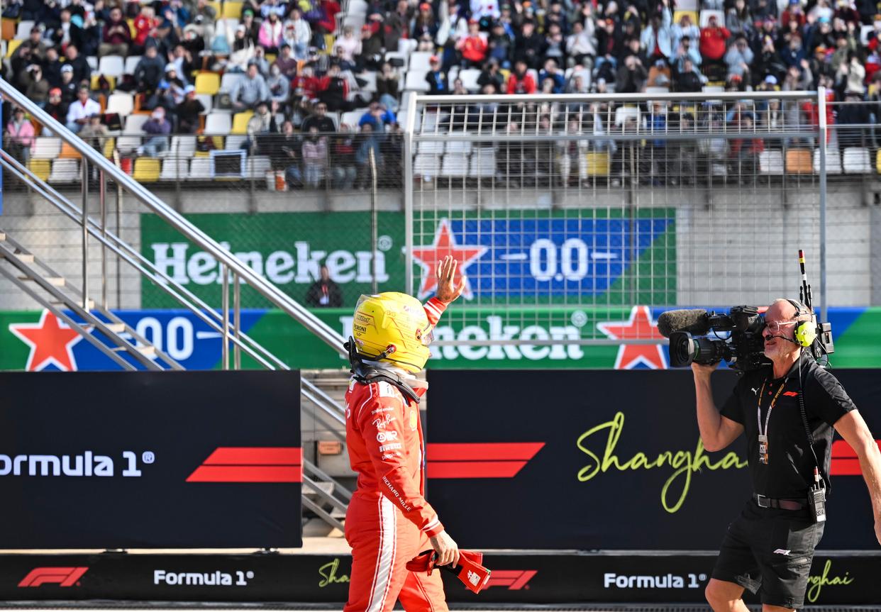 3月13日,法拉利车队英国车手汉密尔顿在比赛后向观众挥手。新华社记者 陈浩明 摄