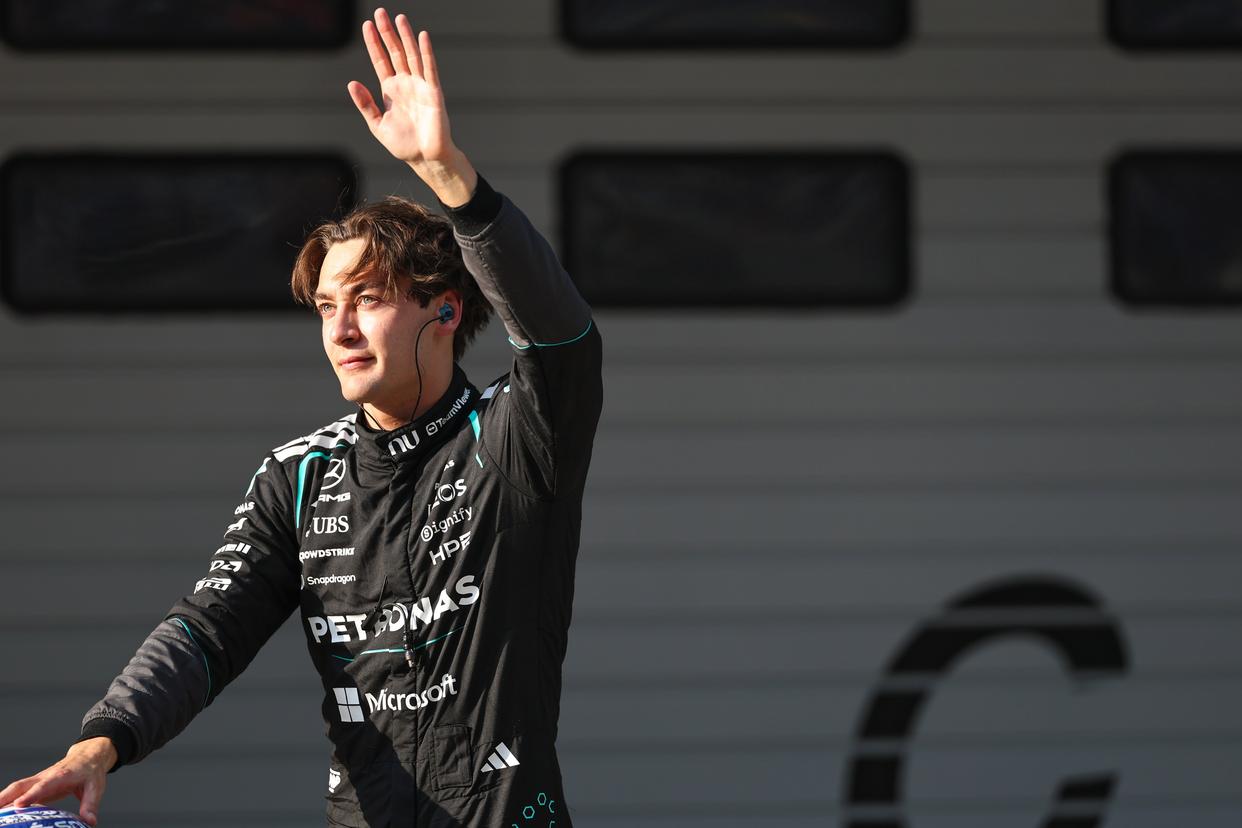 3月13日,梅赛德斯车队英国车手拉塞尔在比赛后向观众挥手。新华社发(钱俊 摄)