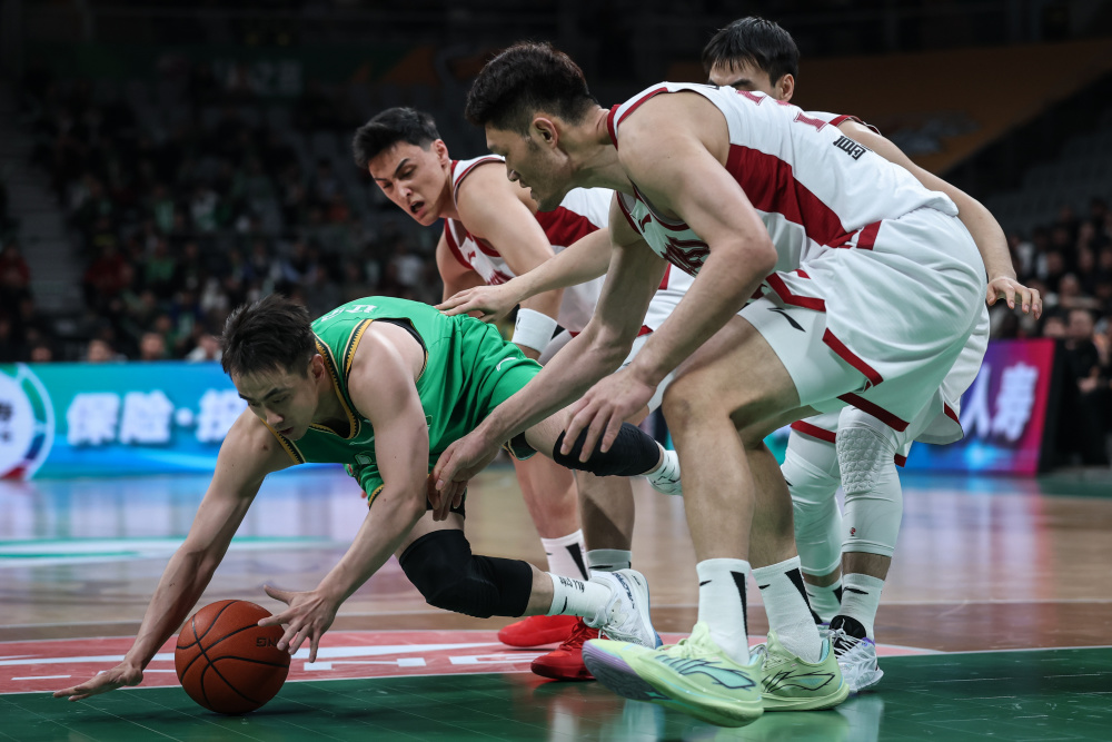3月13日,辽宁本钢队球员赵继伟(右二)在比赛中拼抢。新华社记者 潘昱龙 摄