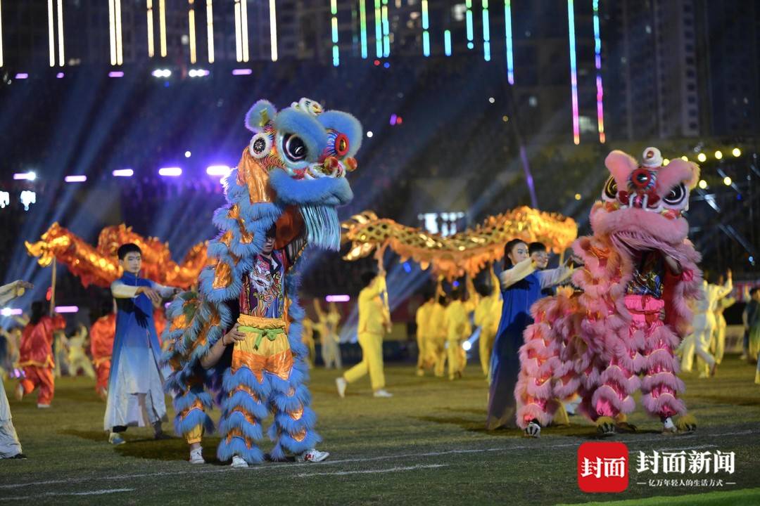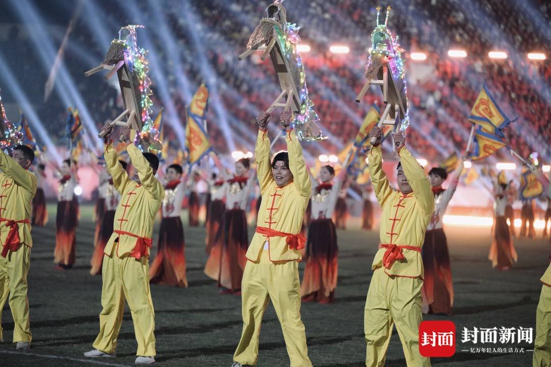 仪式充满巴蜀文化特色。马术秀“旗开得胜”率先点燃气氛,“巴风賨韵”板凳龙舞及融汇大木偶、蜀绣等非遗元素的表演《四海同歌》,将传统艺术与足球热血深度融合。开场片《马力全开》则浓缩了全省21市州球队在分区赛的奋战瞬间。