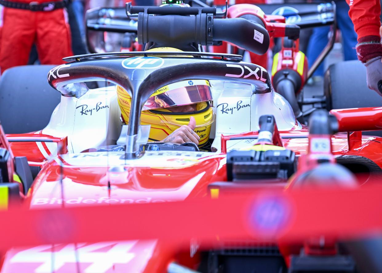 3月14日,法拉利车队英国车手汉密尔顿在比赛前。他最终获得季军。新华社记者 陈浩明 摄