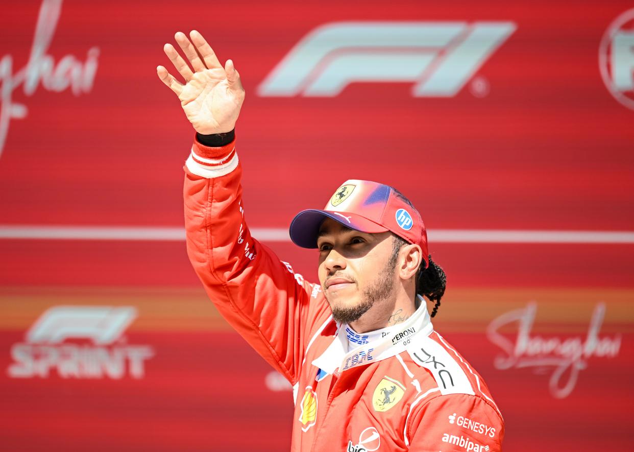3月14日,法拉利车队英国车手汉密尔顿在比赛后向观众挥手致意。他最终获得季军。新华社记者 陈浩明 摄
