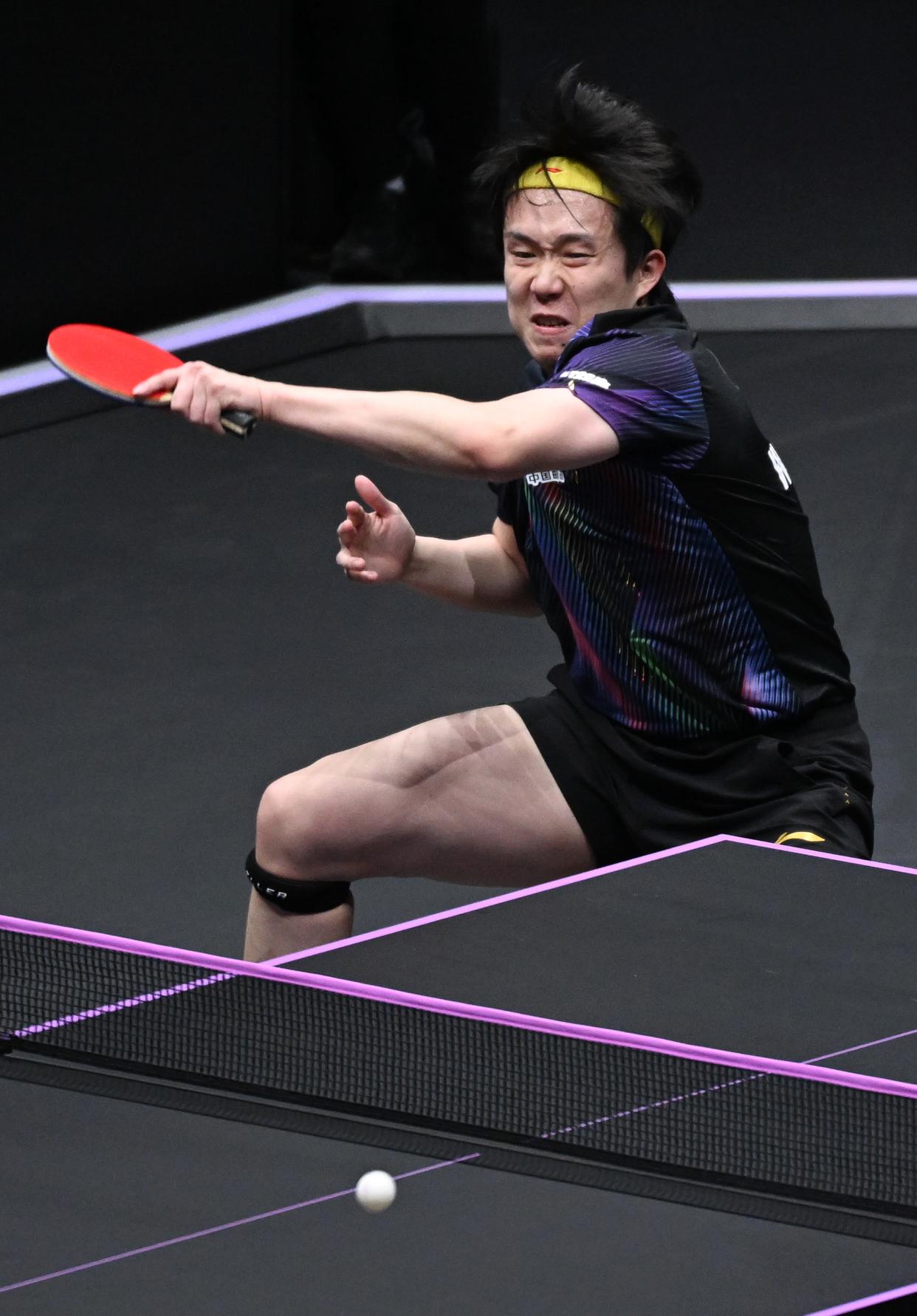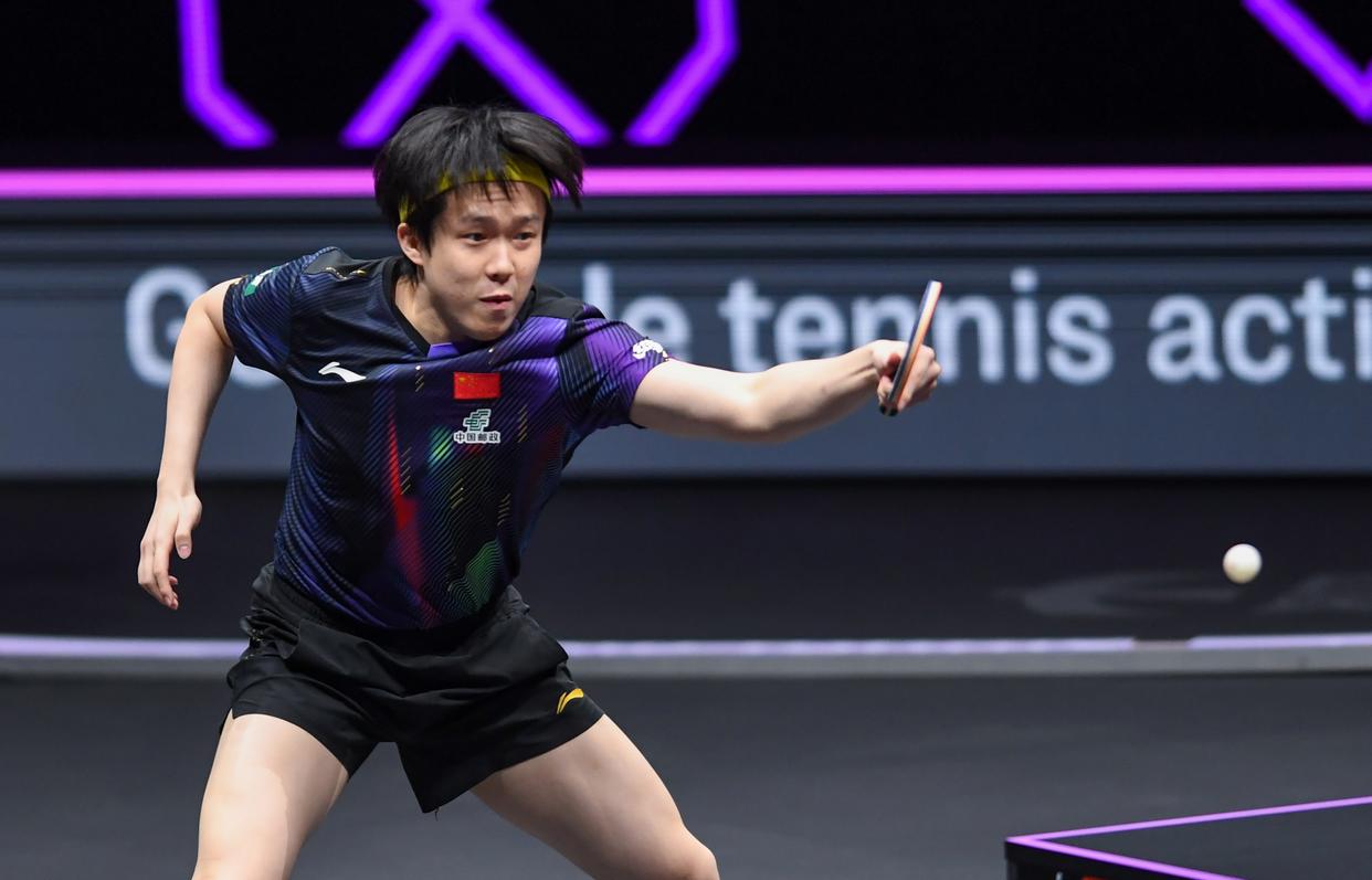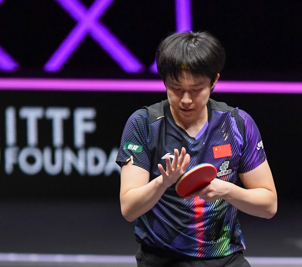 3月14日,王楚钦在比赛中回球。新华社记者 唐奕 摄