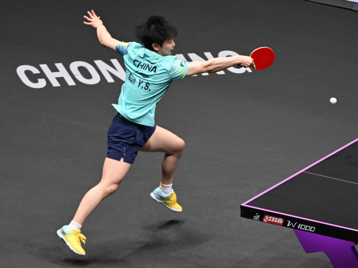 3月14日,孙颖莎在比赛中回球。新华社记者 陈诚 摄