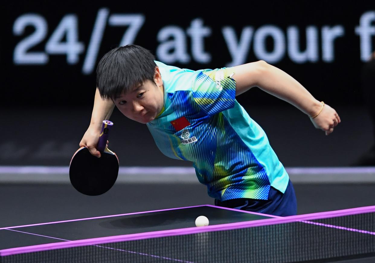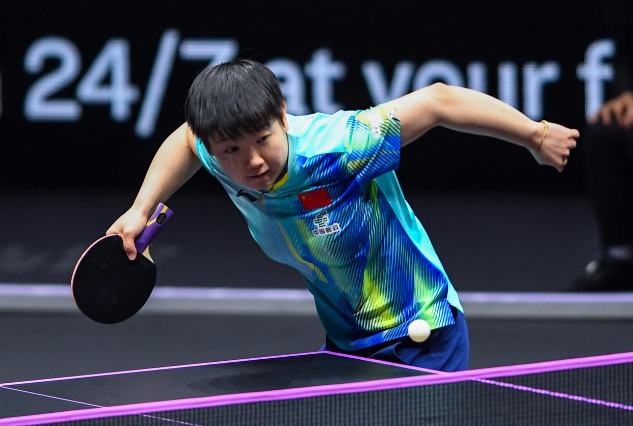 3月14日,孙颖莎在比赛中回球。新华社记者 黄伟 摄
