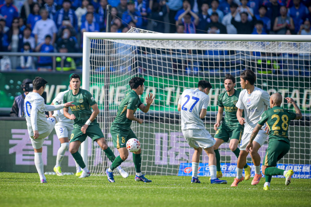下半场开始,泰山队在进攻端投入更多兵力。第49分钟,泰山队经过传接配合,克雷桑在中路送出斜塞,右路的谢文能插入禁区爆射破门,打破僵局。取得领先后,泰山队又获得多次得分良机,但未能把握住。第86分钟,国安队外援恩科洛洛在边路过人后送出传中,张玉宁倒地铲射破门,扳平比分。