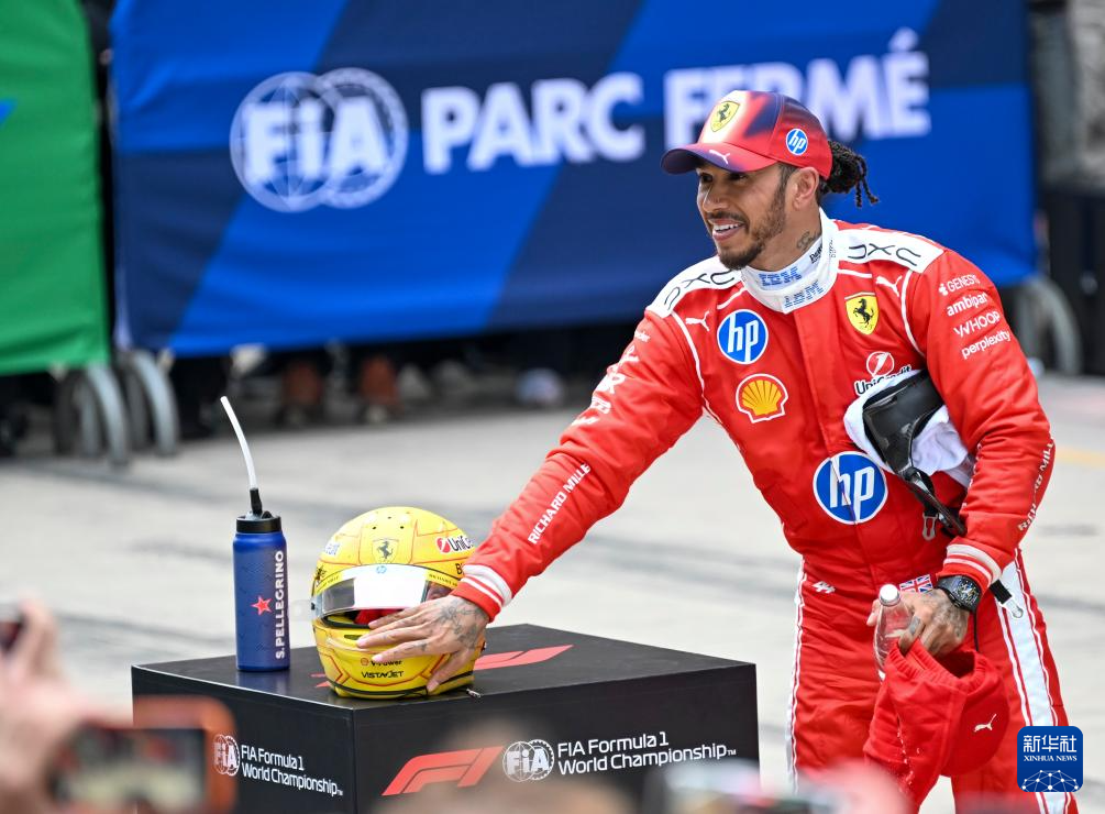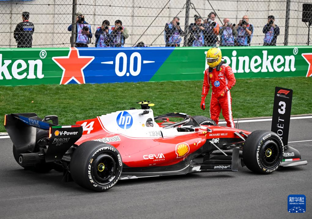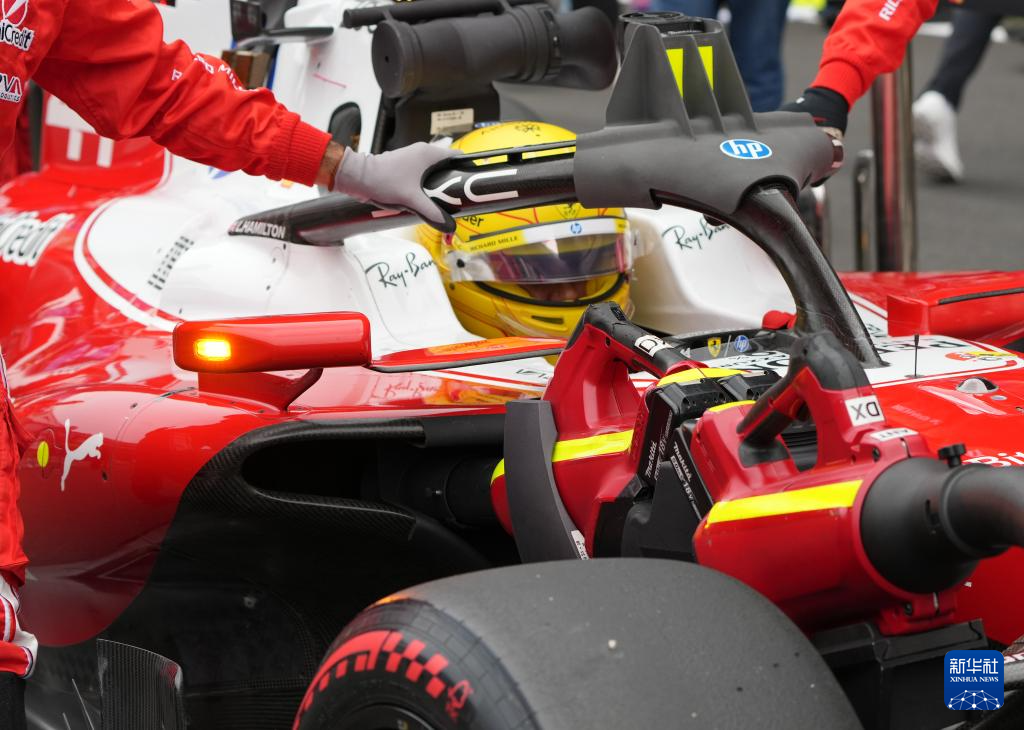 3月15日,季军法拉利车队英国车手汉密尔顿在抵达终点后观察赛车。