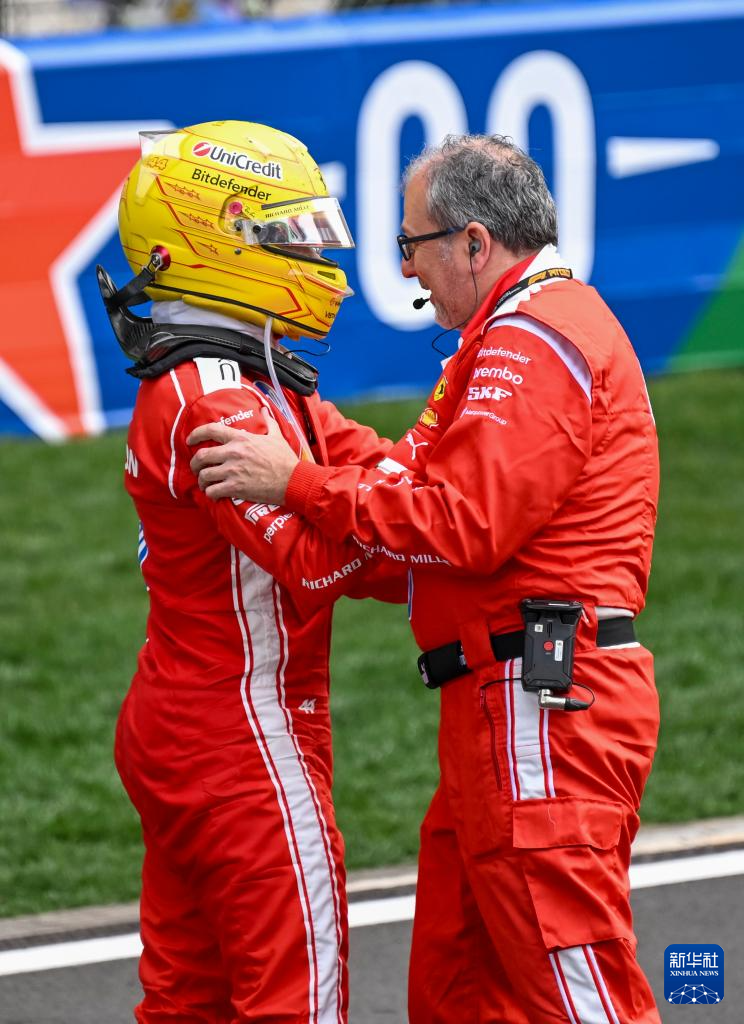 3月15日,季军法拉利车队英国车手汉密尔顿(左)在比赛后与车队技师拥抱。
