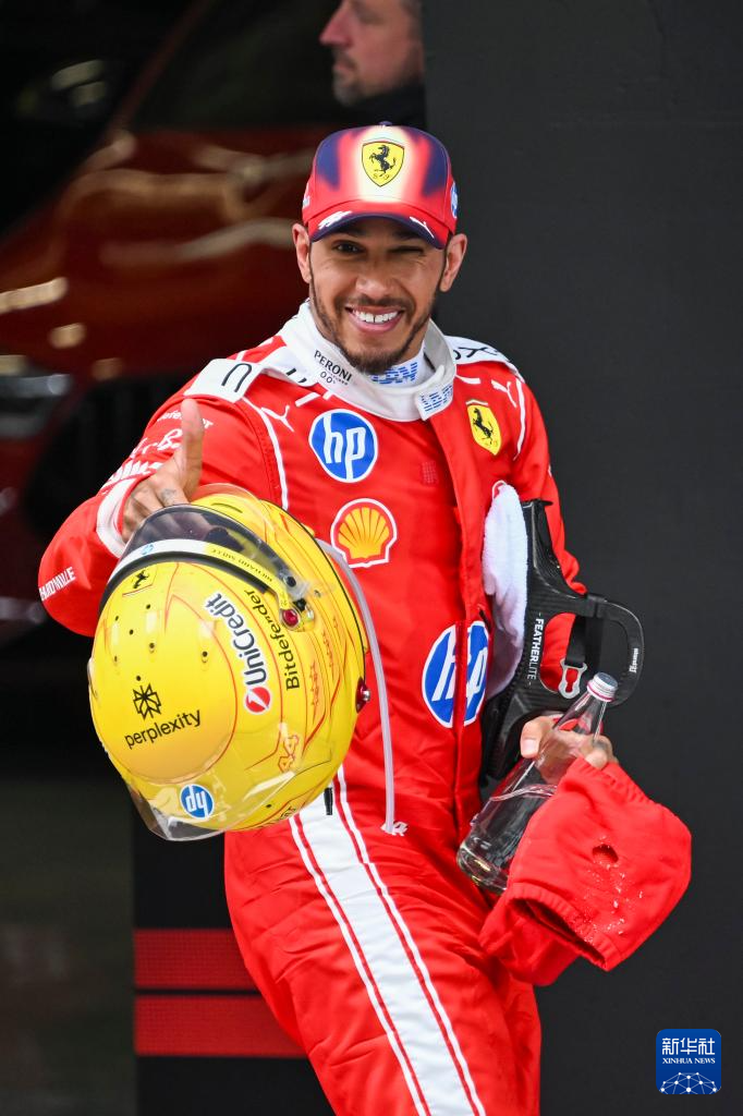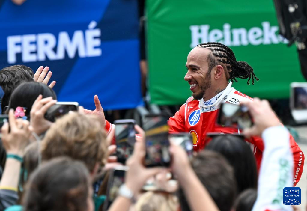 3月15日,季军法拉利车队英国车手汉密尔顿在比赛后与观众互动。