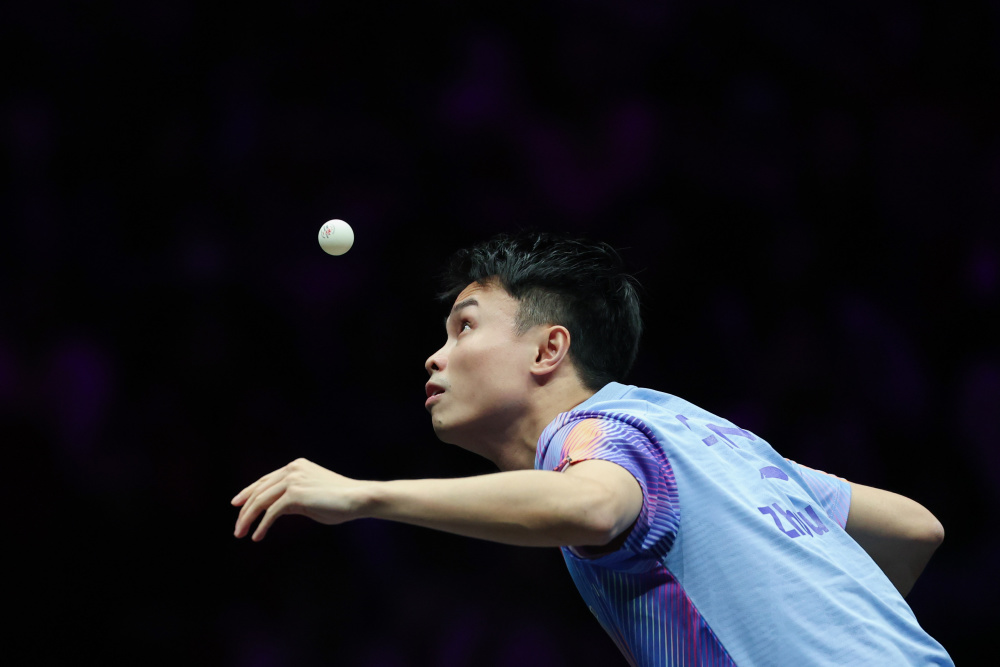 3月13日,周启豪在世界乒乓球职业大联盟(WTT)重庆冠军赛男子单打八分之一决赛中。新华社记者 黄伟 摄