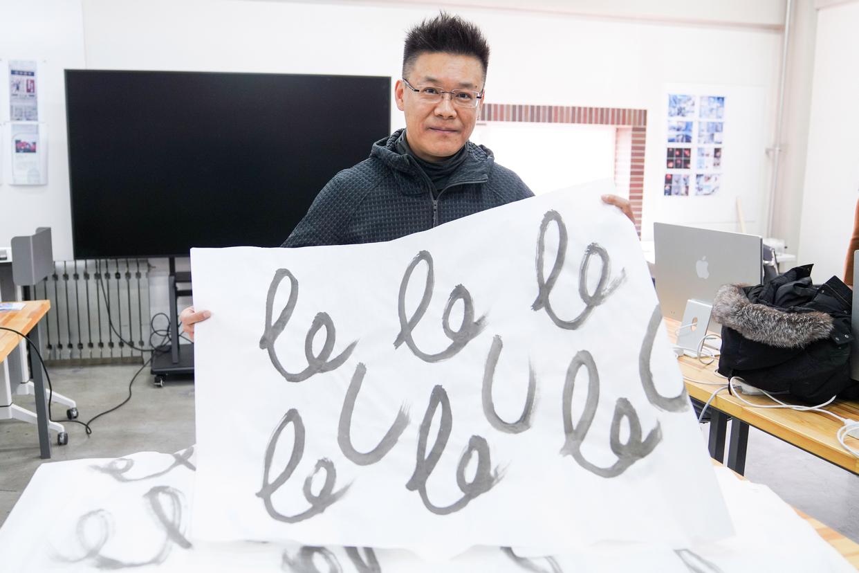 图为会徽设计团队的主创设计师郭昱峰手持设计草图。新华社记者 许畅 摄国际大体联主席雷诺·艾德