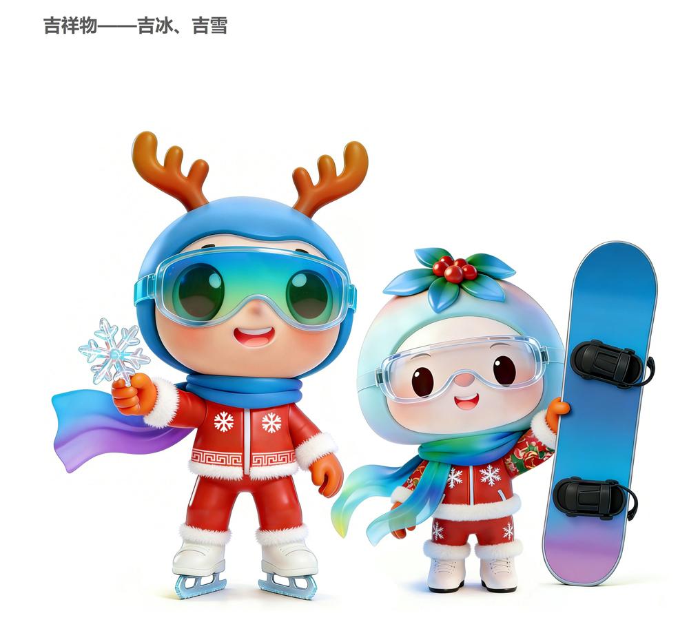 图为长春大冬会吉祥物“吉冰”和“吉雪”。“吉冰”笑意盈盈