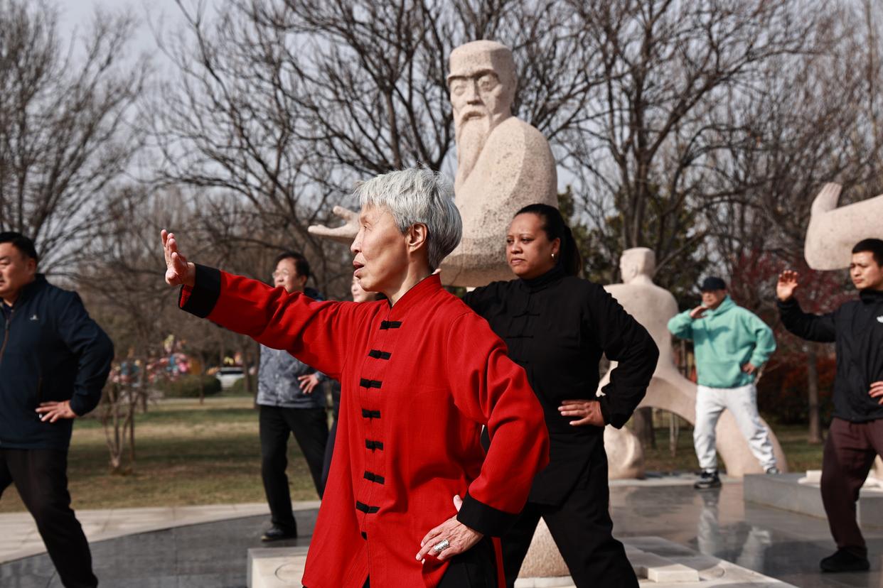 3月18日,陈一梅(前)带领学员们练拳。新华社记者 任卓如 摄太极之门