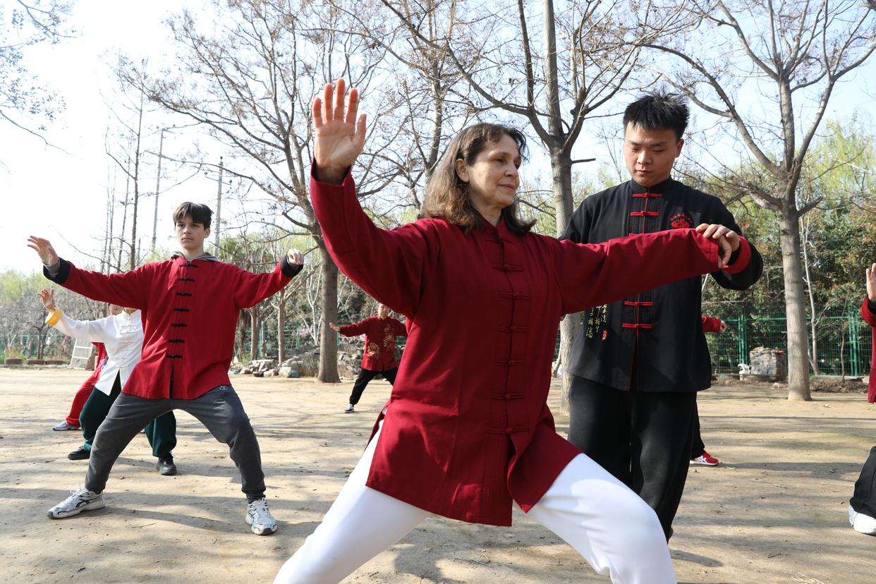 3月20日,外籍学员在陈家沟村内跟随教练练拳。新华社发 徐宏星 摄在中国