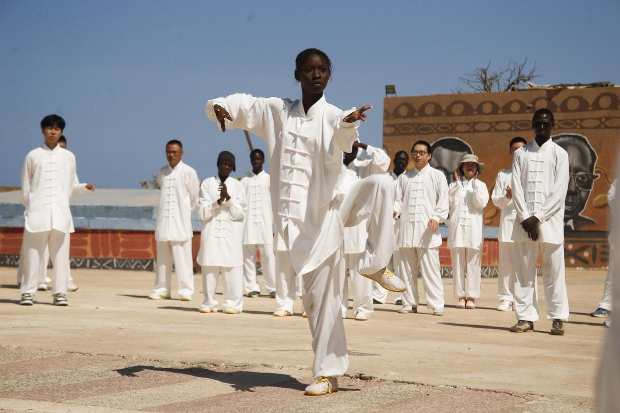 3月19日,在塞内加尔首都达喀尔的非洲纪念广场上,一名塞内加尔学生展示太极拳。新华社发(阿利乌·姆巴耶 摄)在陈家沟太极拳国际武术院内