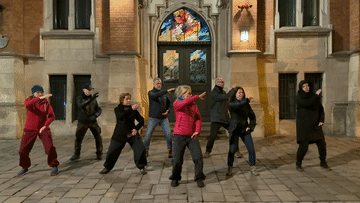 3月19日,外籍学员在陈家沟村内练拳(无人机照片)。新华社发 徐宏星 摄如今