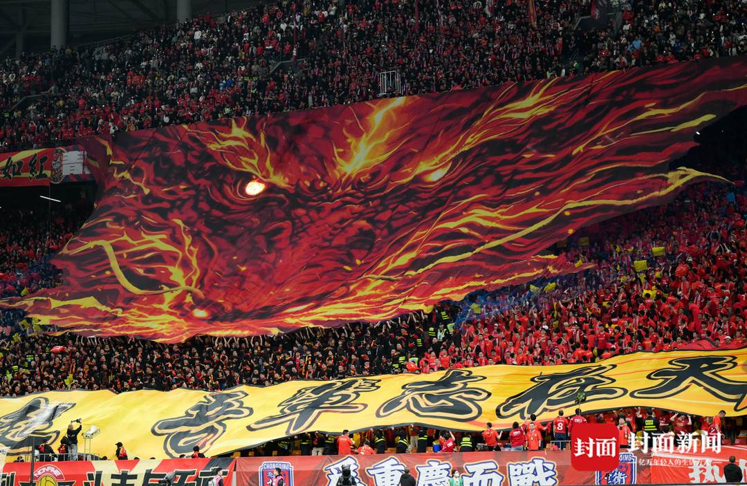 3月21日晚,重庆龙兴足球场涌进五万多名球迷,阔别17年的中超“川渝德比”在震天的“雄起”声中打响。看台南侧,巨幅TIFO缓缓展开,这场榜首大战从一开始就火药味十足。
