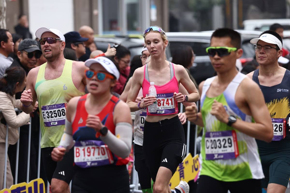 美景相伴,激情不断。赛道上,全体选手奋勇争先、逐梦前行,交出了一份亮眼的成绩单。肯尼亚选手约翰·姆布鲁·穆鲁里以2小时10分16秒的成绩夺得全程马拉松男子冠军;维罗妮卡·恩杰里·迈纳则以2小时24分14秒的优异表现斩获女子冠军,同时刷新了汉马赛会纪录。中国选手何杰表现不俗,获得男子全程第四名、国内选手第一名的好成绩。半程马拉松赛场同样精彩,北京选手房博、山东选手潘元晨分别摘得男女冠军。“赛道串联起城市地标,樱花点缀其间,既有速度与激情,又有人文与自然的交融,让我越跑越有劲。”半马冠军房博在赛后分享道。