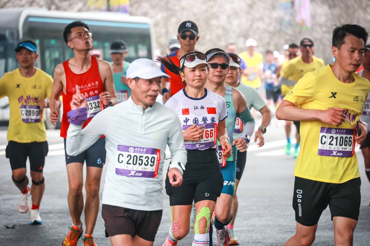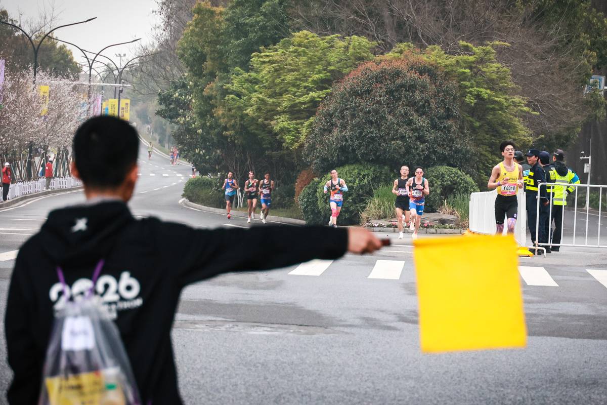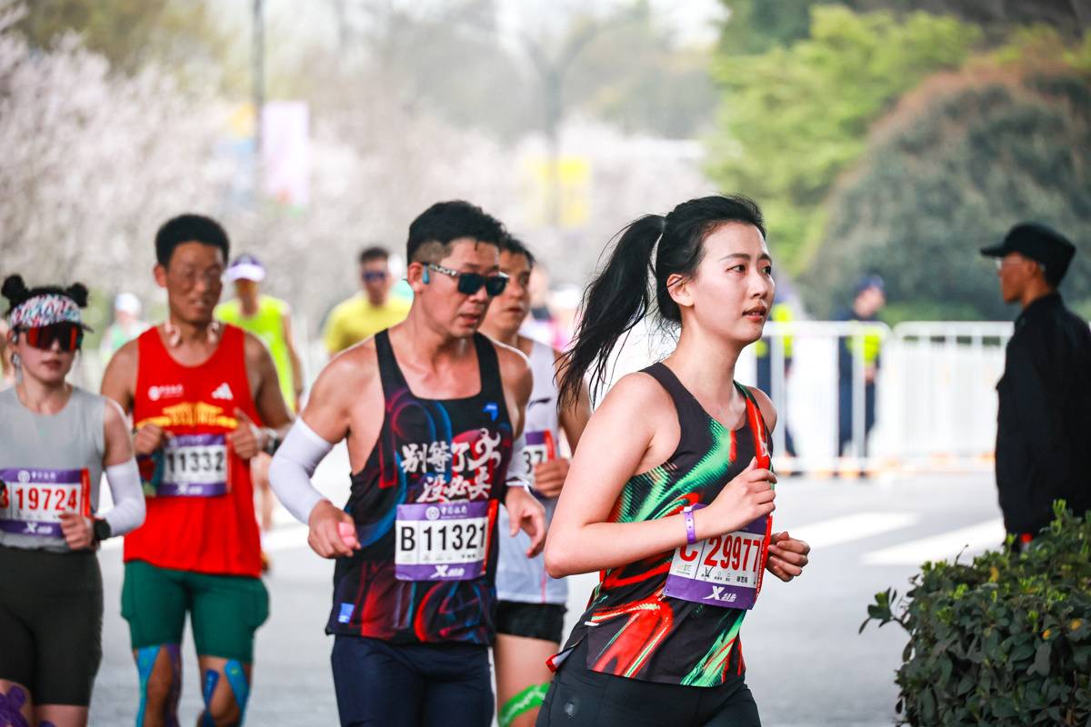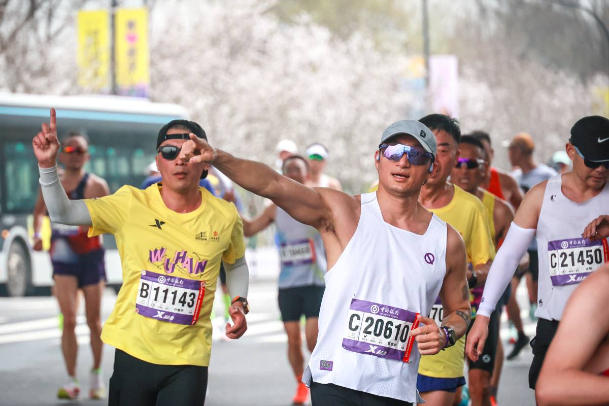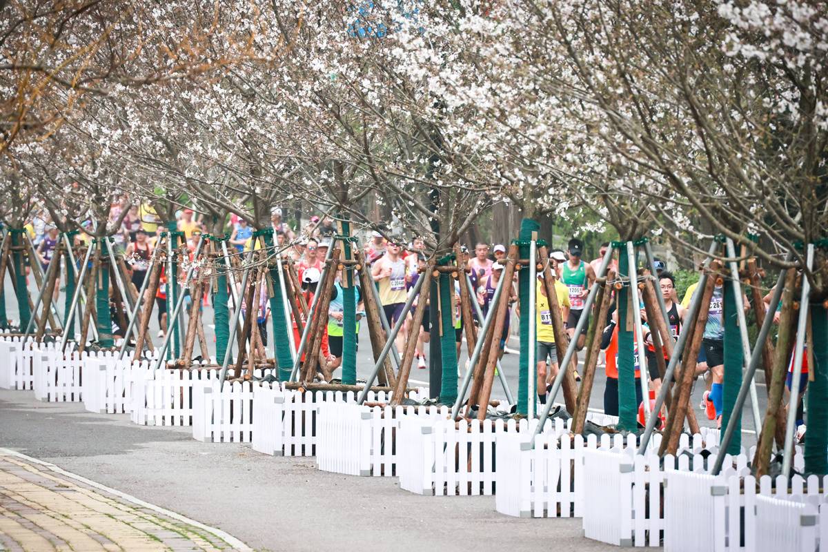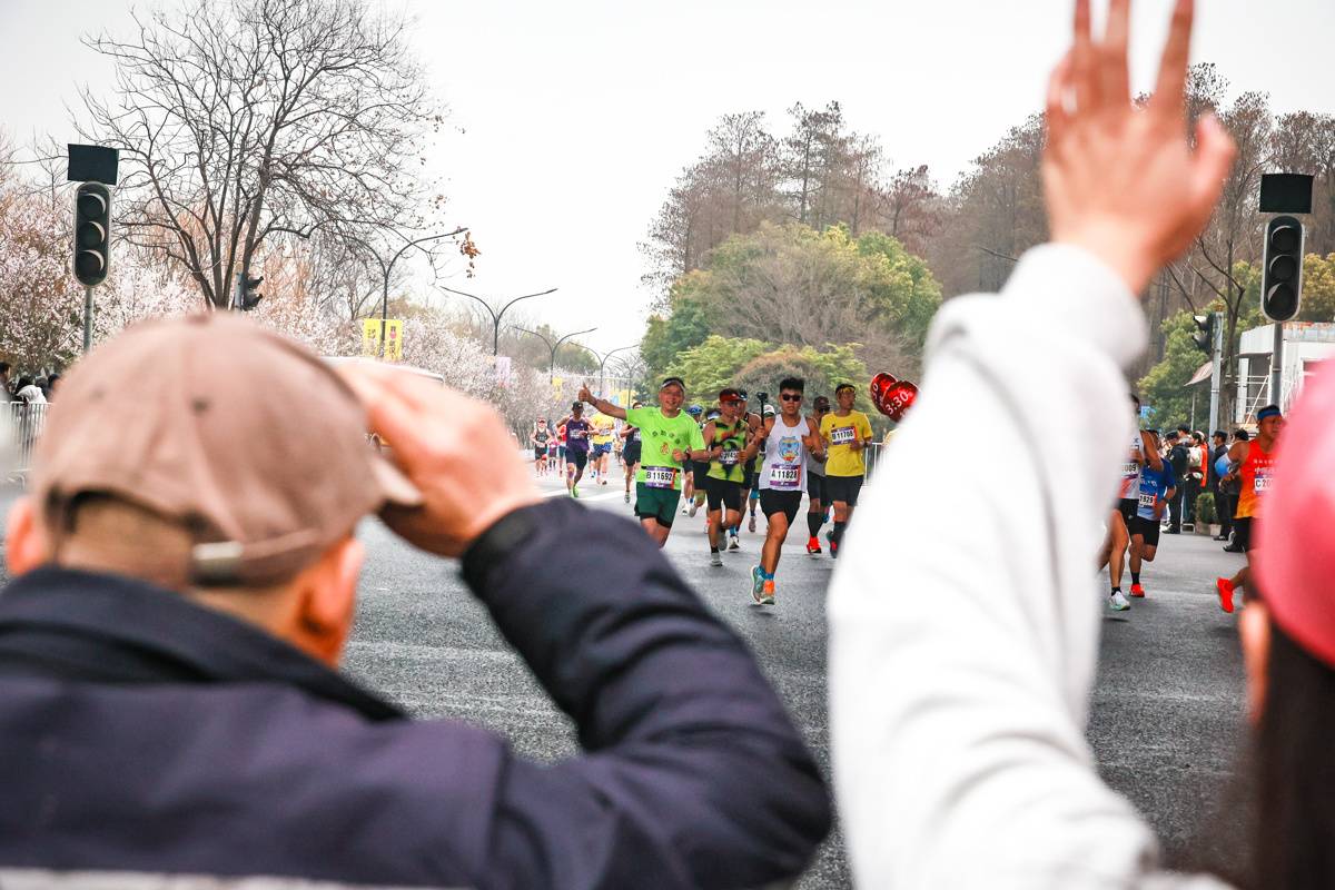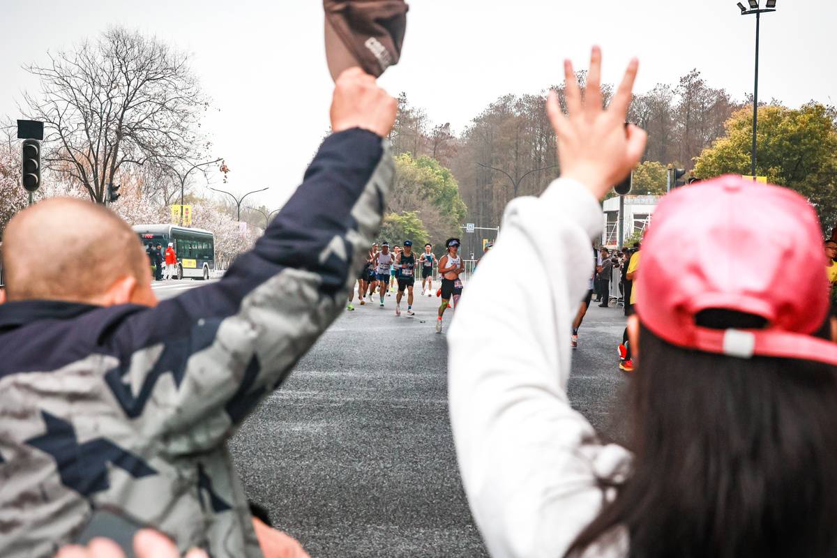 3月22日,2026武汉马拉松开跑,何杰等全马跑者首次体验东湖白马道,并跑过曾经的全马终点欢乐谷。(湖北日报全媒记者 时龚 摄)