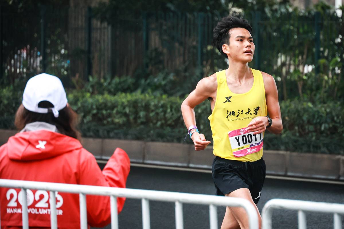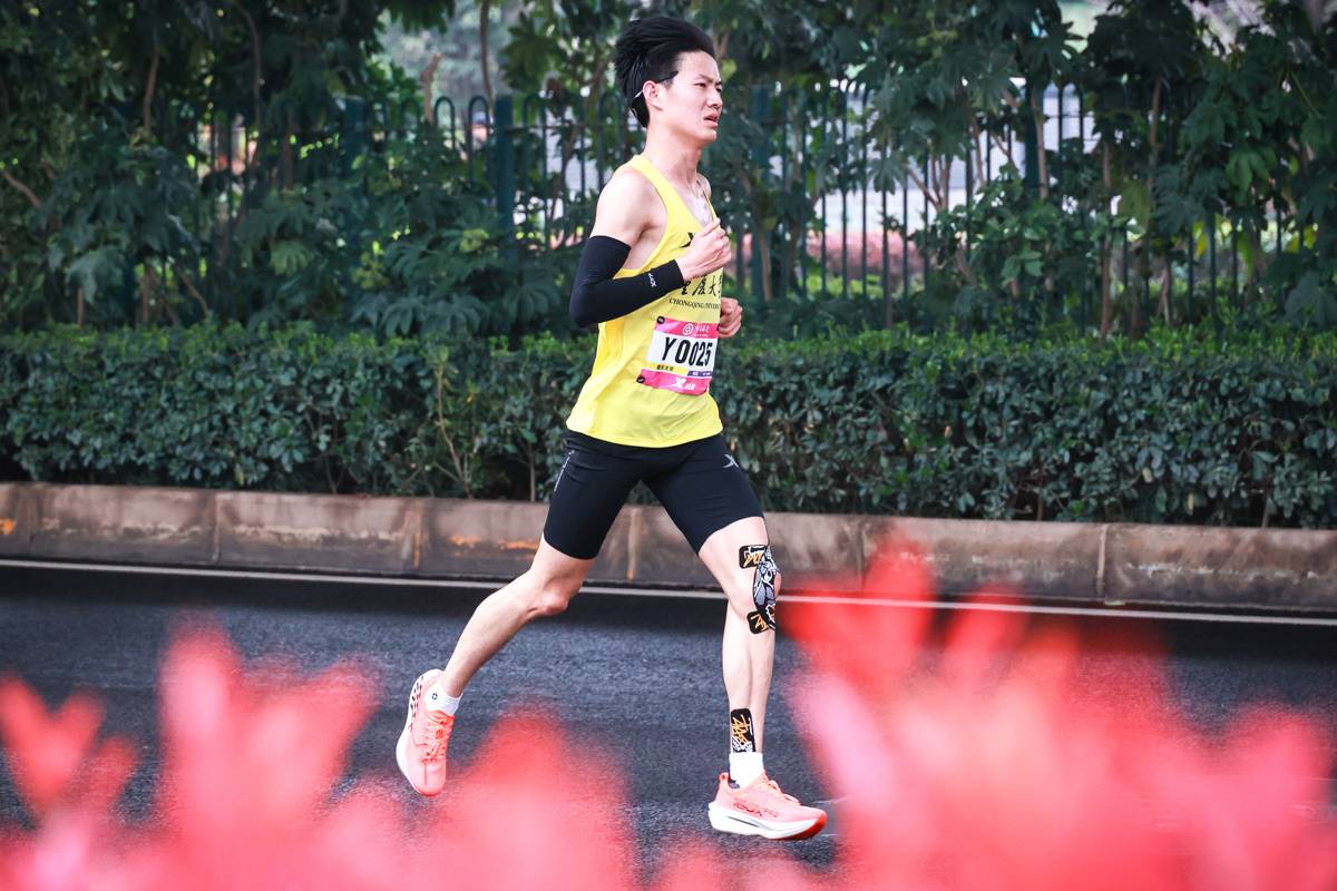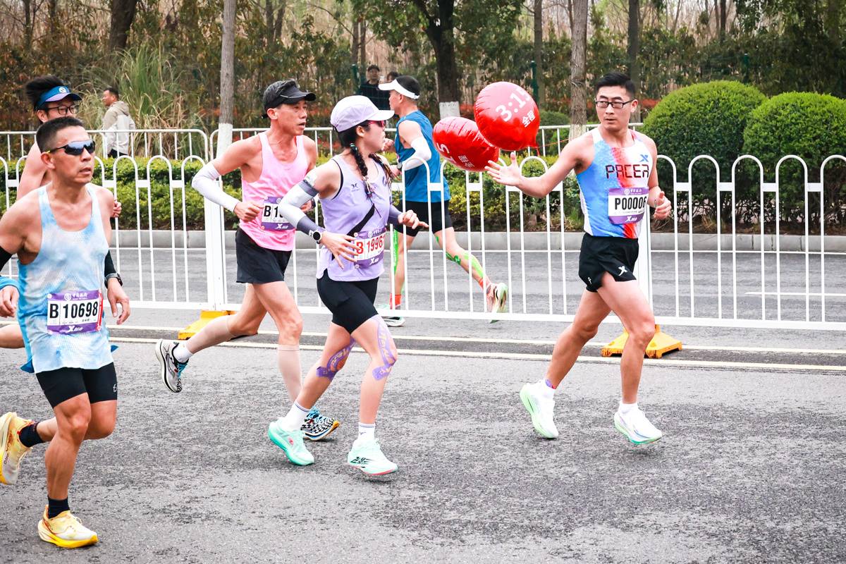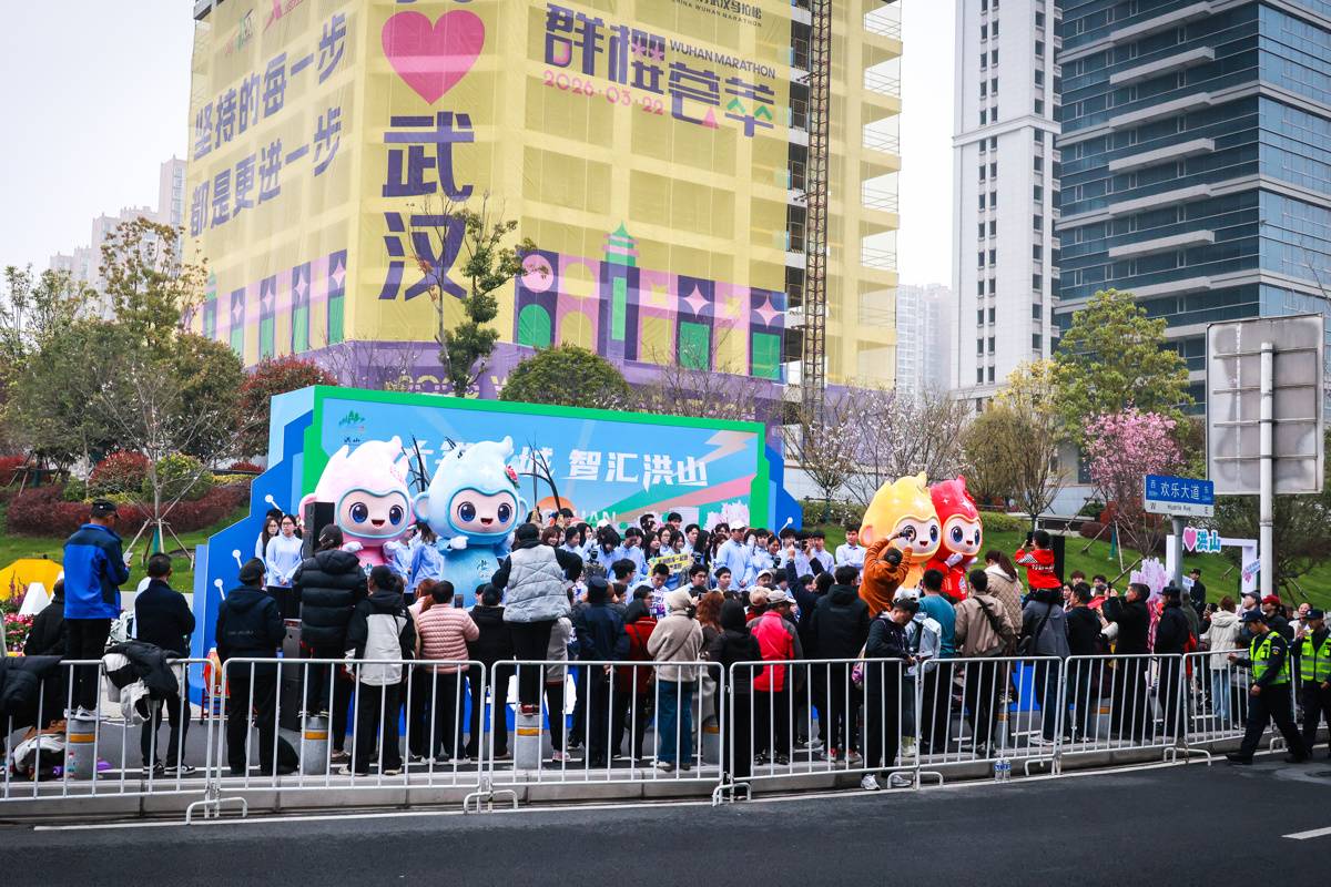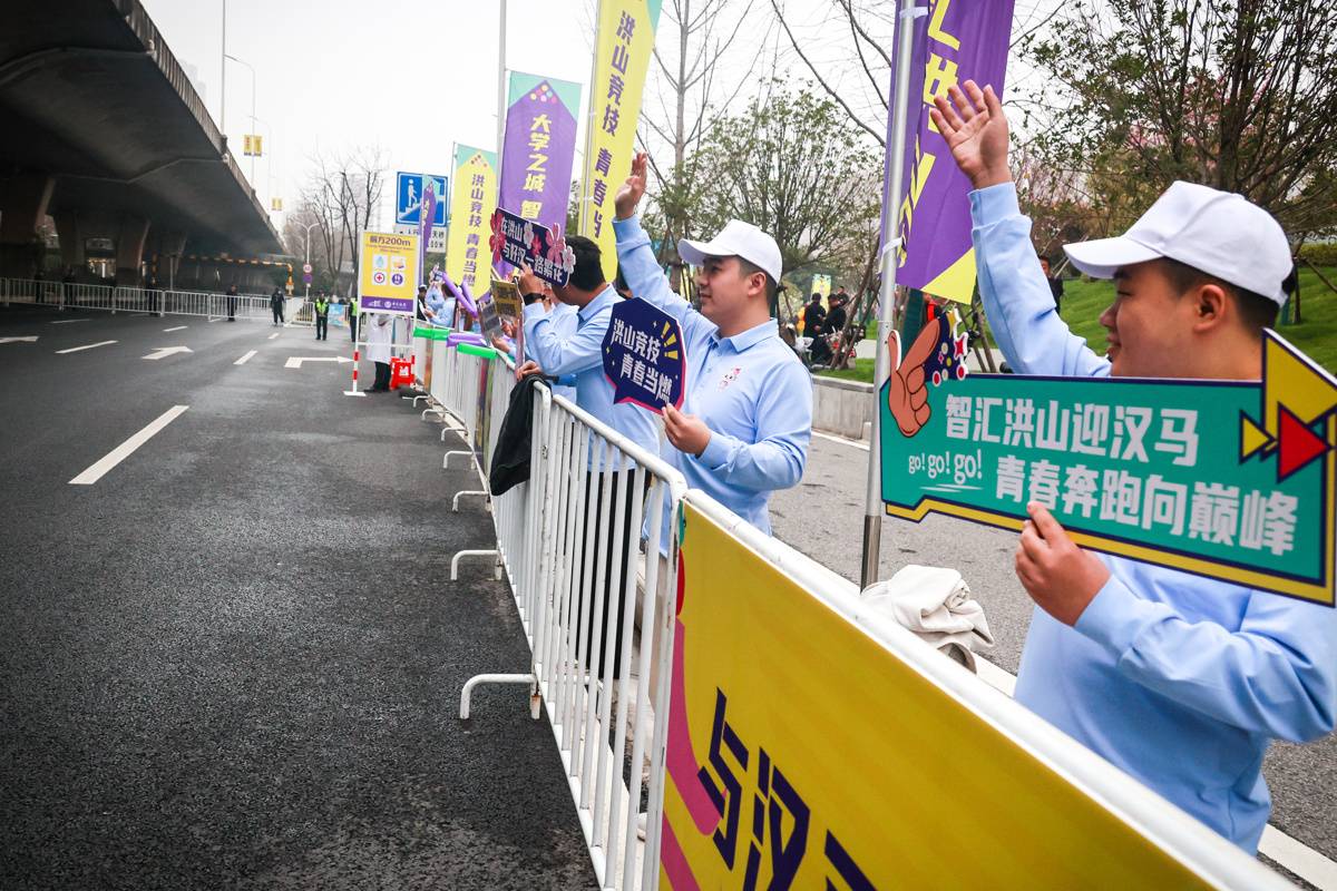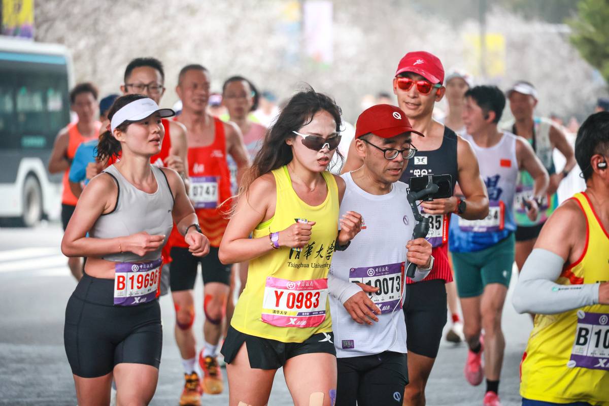 3月22日,2026武汉马拉松开跑,何杰等全马跑者首次体验东湖白马道,并跑过曾经的全马终点欢乐谷。(湖北日报全媒记者 时龚 摄)