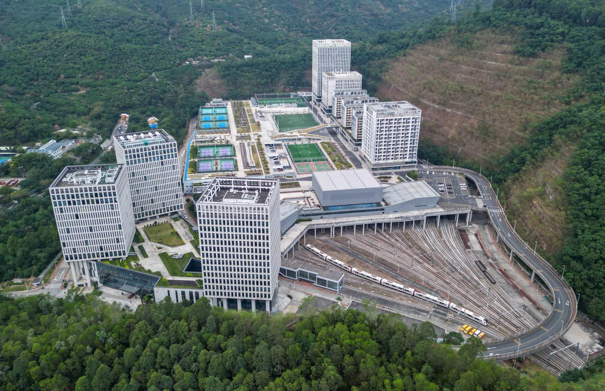 在深圳地铁深云车辆段上盖建设的深云文体公园(无人机照片)。新华社发(资料照片)