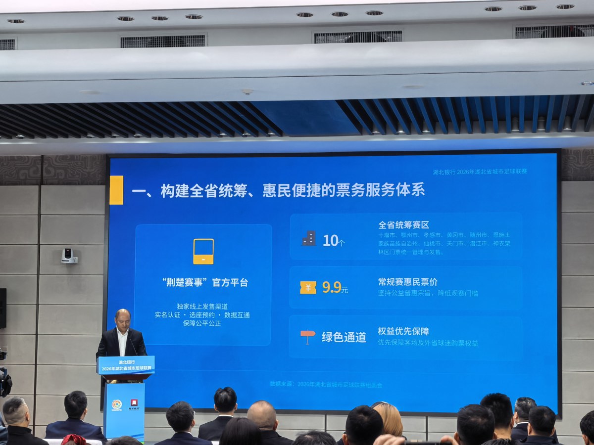 3月26日上午,2026年湖北省城市足球联赛(以下简称“楚超”)商务发布会在武汉经开区中国车谷国际体育文化交流中心举行。