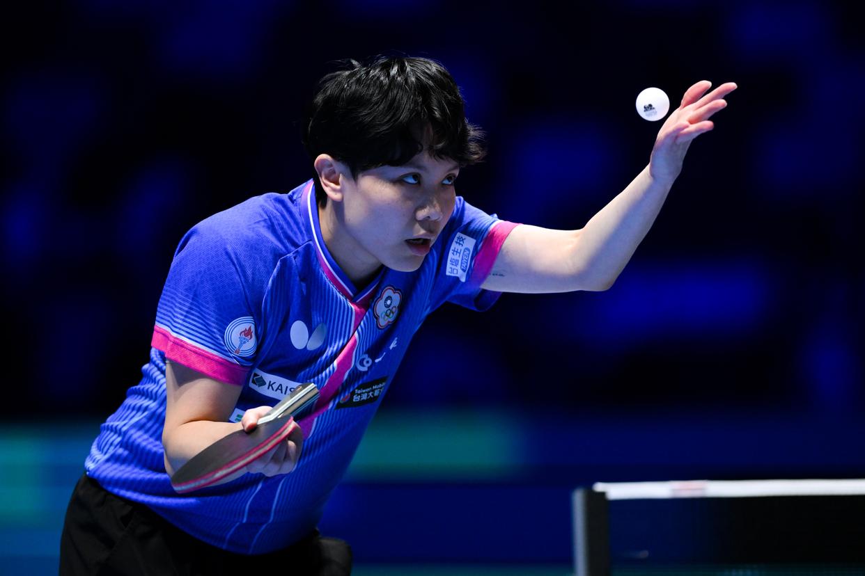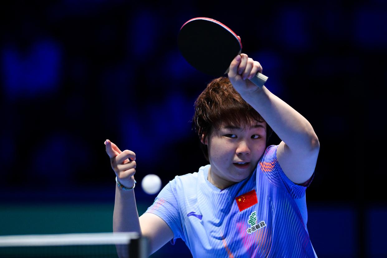 3月30日,中国选手蒯曼在女子单打小组赛中回球。最终,她3比2战胜法国选手夏洛特·卢茨。新华社发(张金加摄)