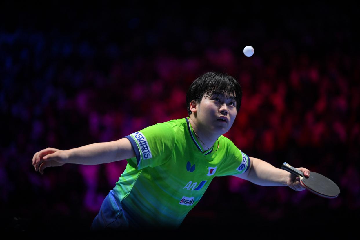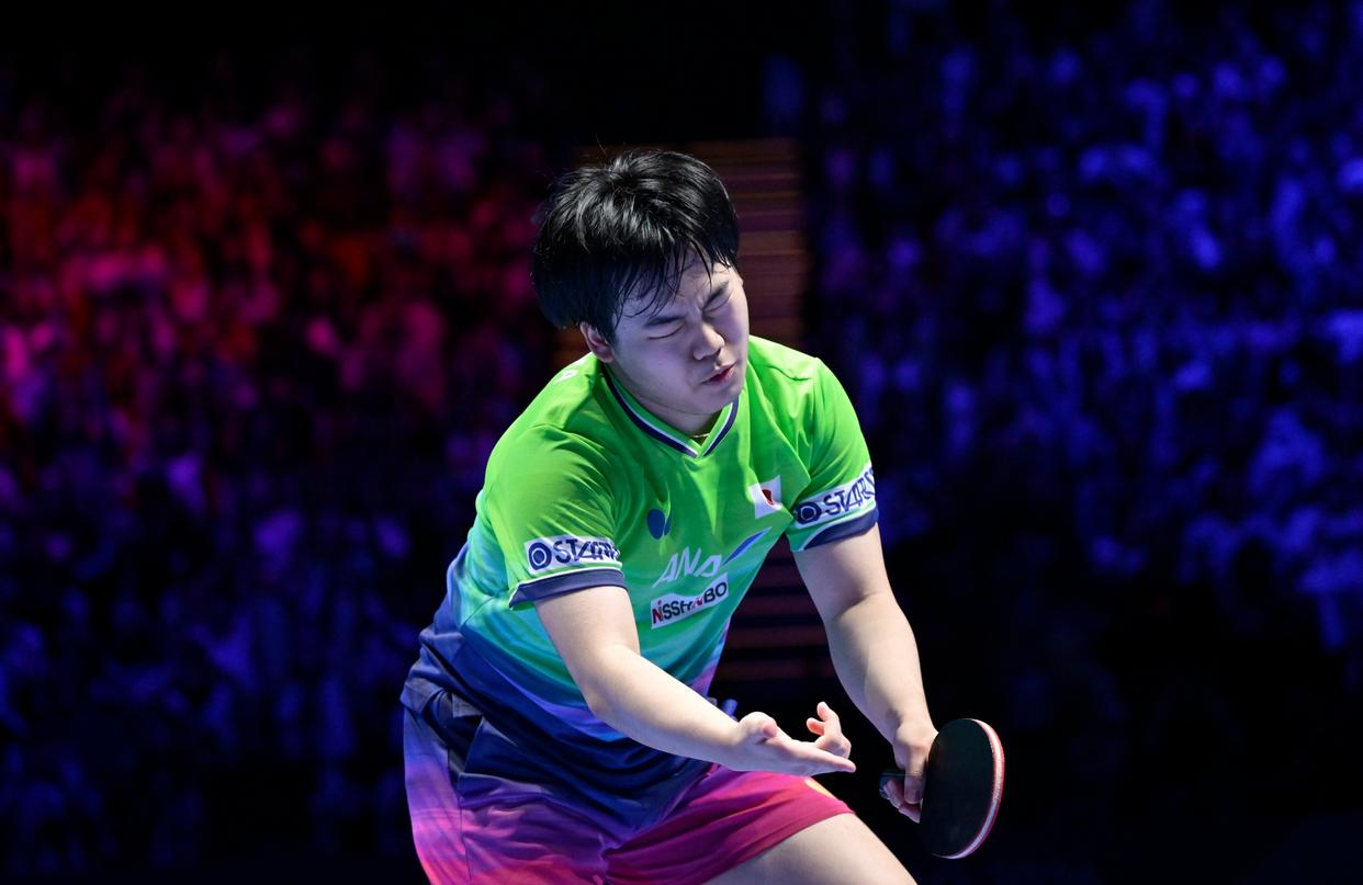 4月5日,日本选手松岛辉空在比赛中回球。新华社发(张金加摄)