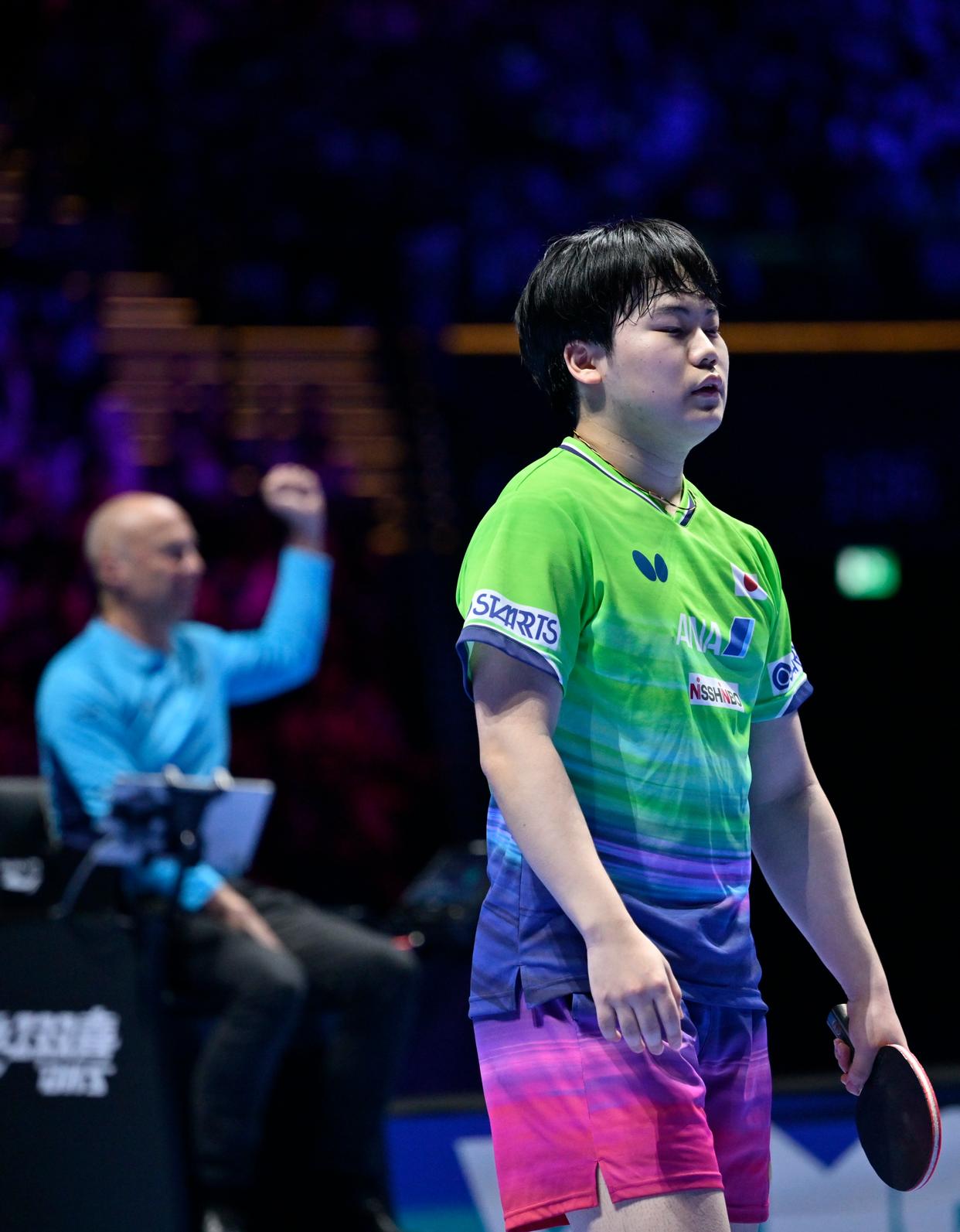 4月5日,日本选手松岛辉空在比赛中失分后懊恼。新华社记者 于洋 摄