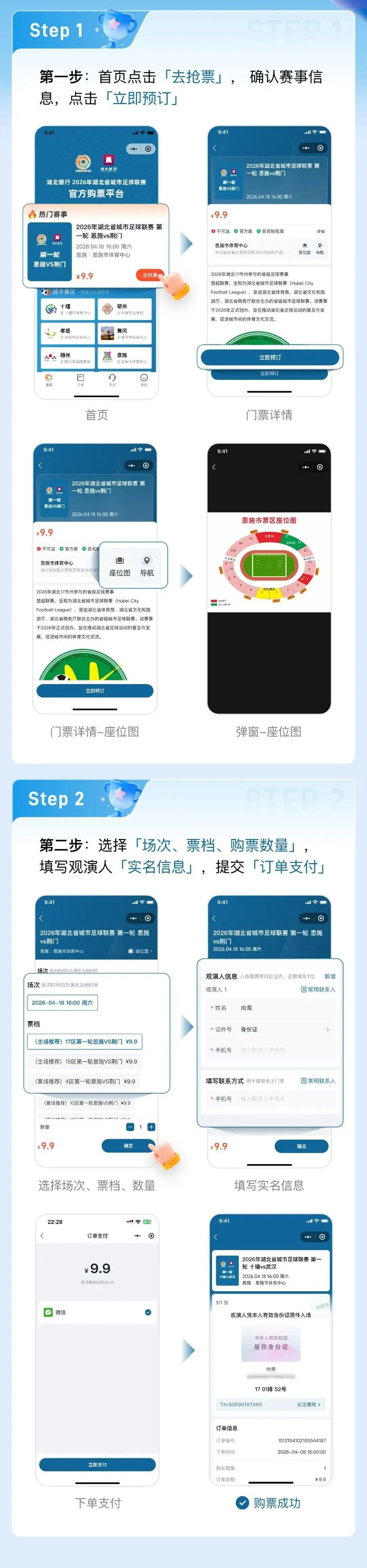 十堰、鄂州、孝感、黄冈、随州、恩施、仙桃、天门、潜江、神农架林区等十大赛区球票均由湖北省旅游集团打造的“荆楚赛事”平台独家发售。武汉、襄阳、宜昌、黄石、荆州、荆门、咸宁等七城将会在各自自有平台发售。