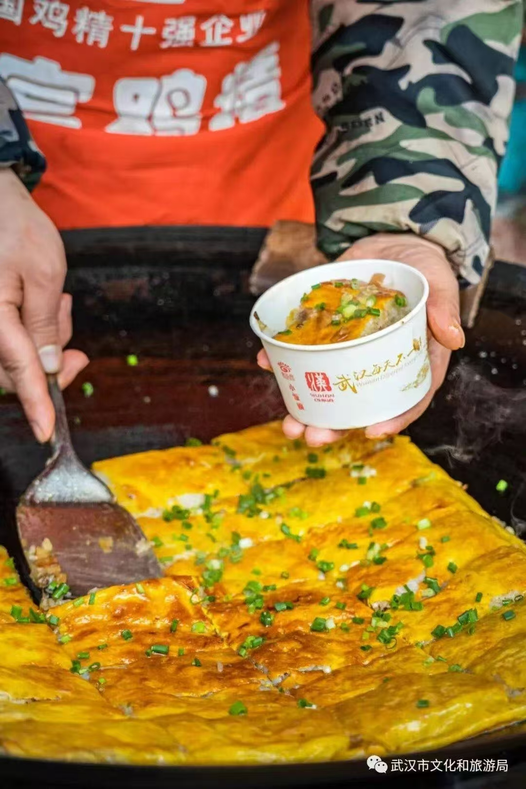 三鲜豆皮:三鲜豆皮是湖北省武汉市的另一道标志性传统小吃,与热干面齐名,被誉为“武汉早餐双绝”之一。它并非单纯的豆制品,而是以绿豆、大米混合磨浆制成外皮,包裹糯米和多种馅料煎制而成,口感外脆内软、咸鲜油润。
